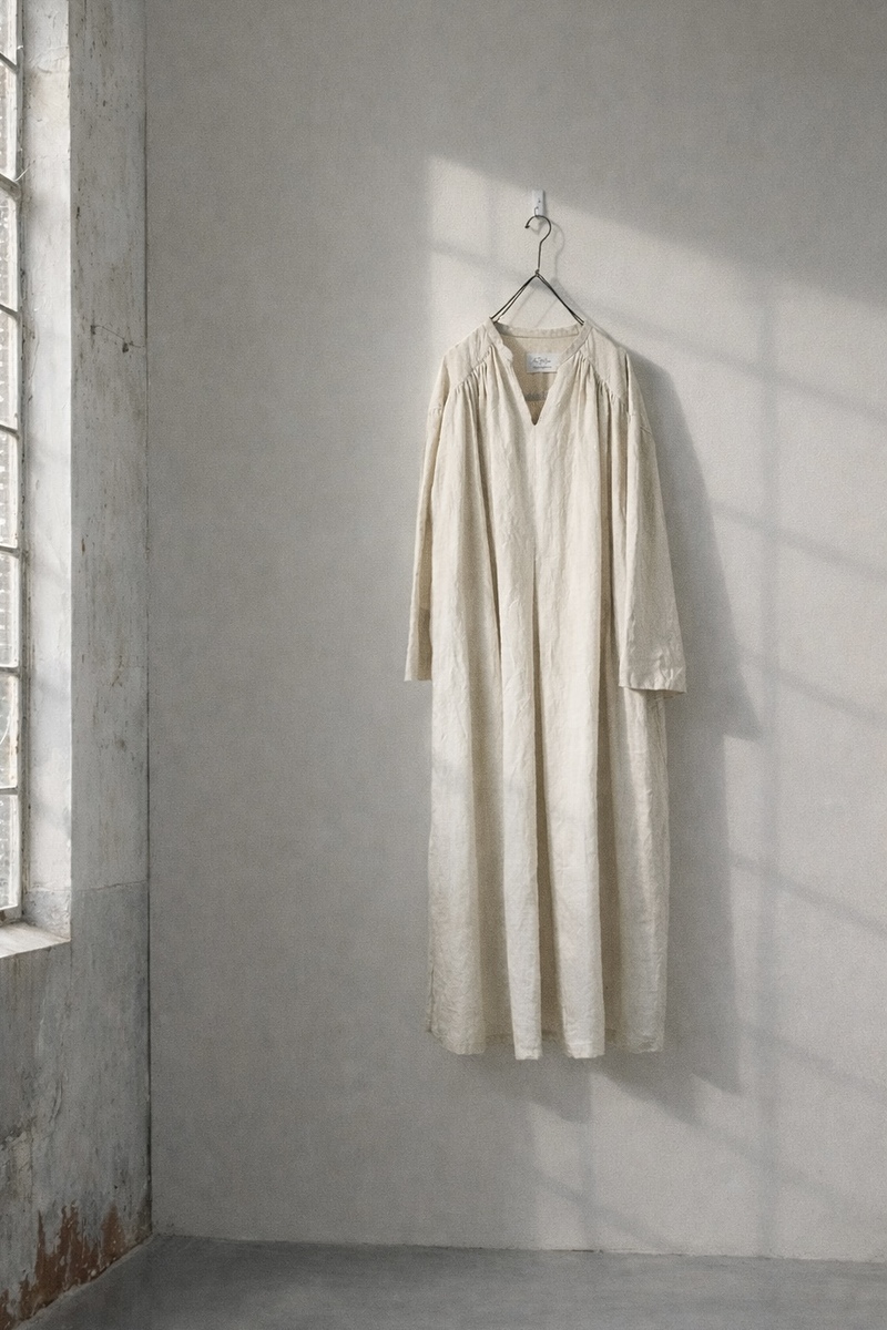 Vneck gather long op リネン
